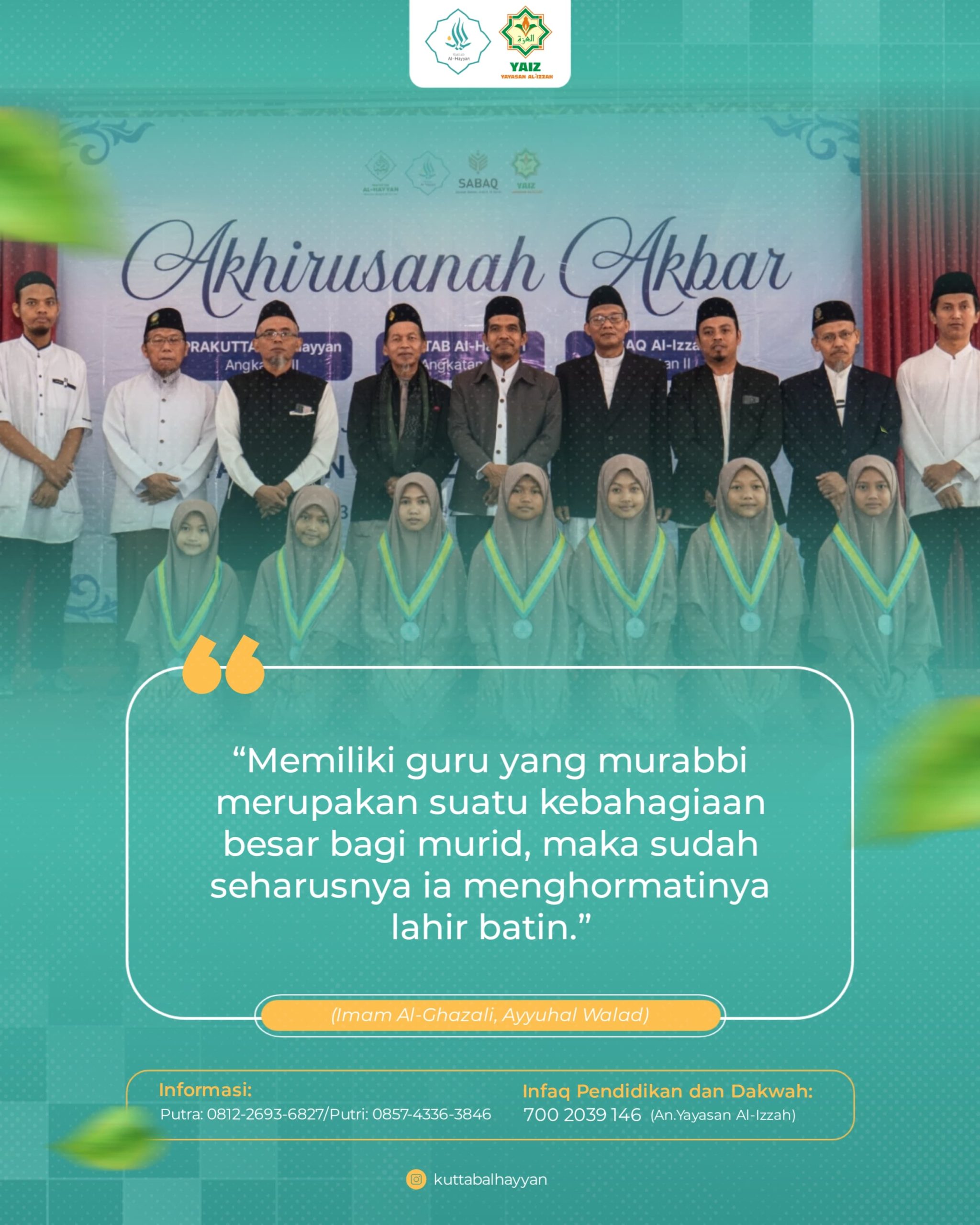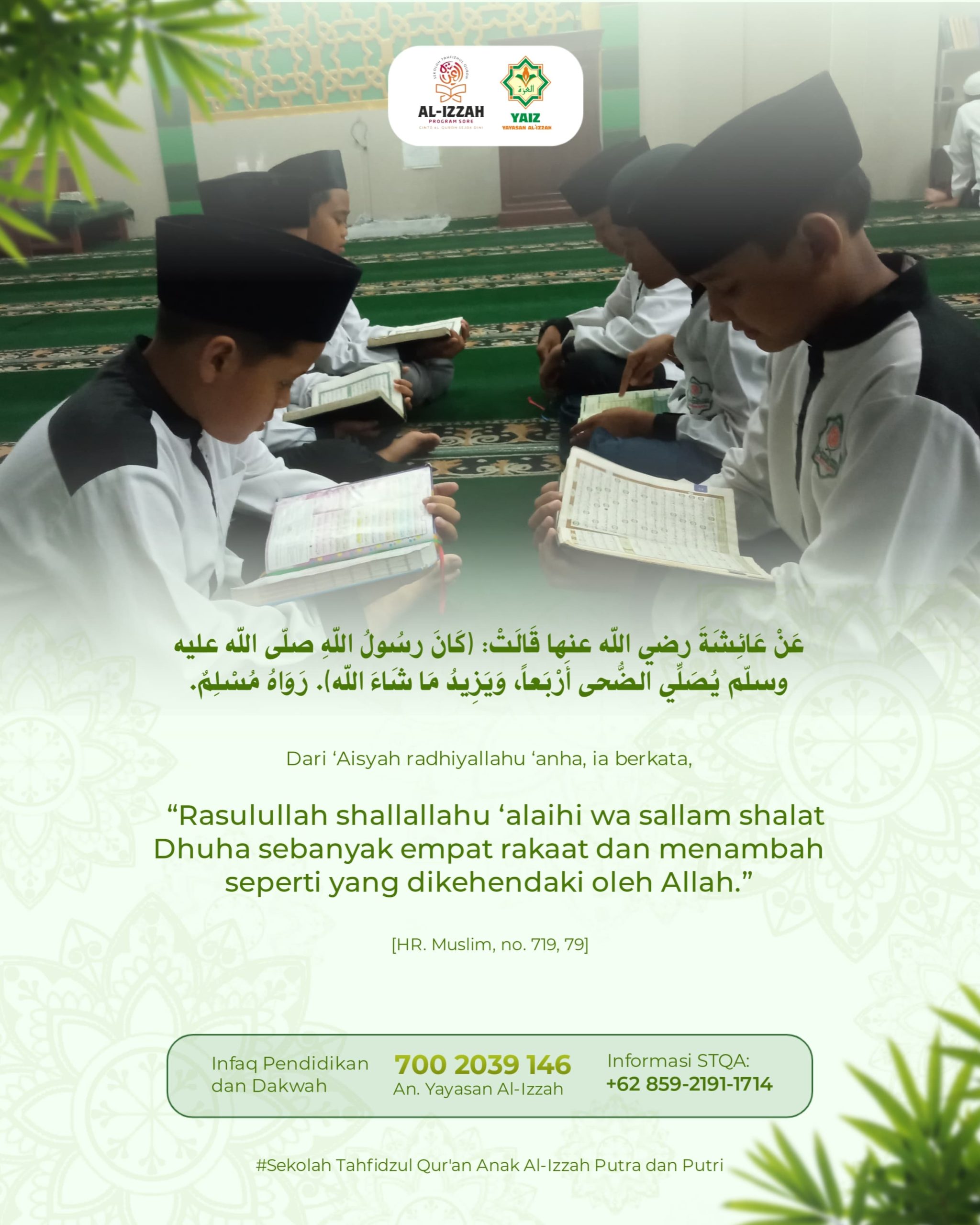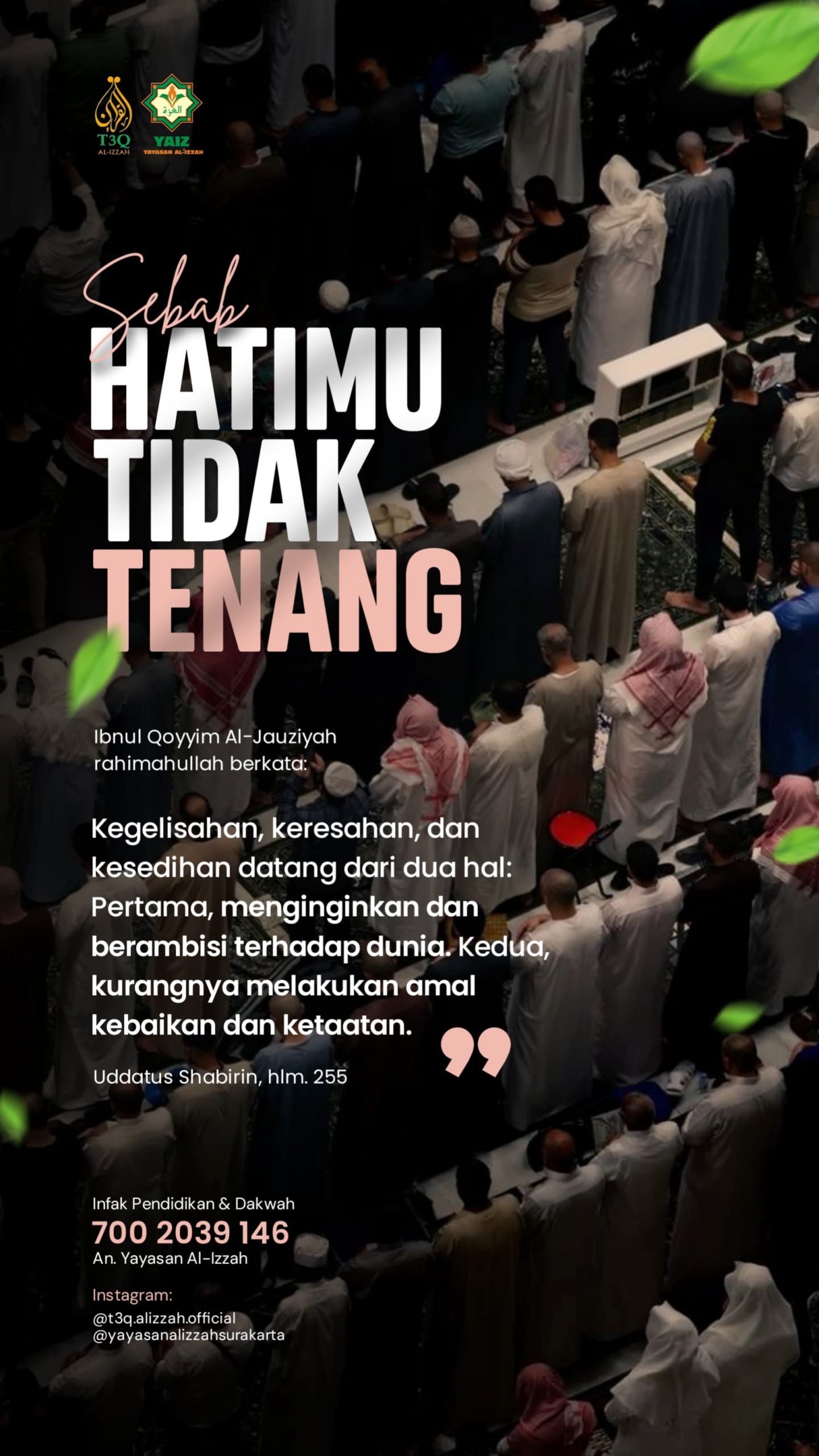 •┈┈┈┈┈┈•✿﷽✿•┈┈┈┈┈┈• Al-Hasan Al-Bashri berkata, “Segala kebaikan ada pada dua hal: mengerjakan perkara yang Allah perintahkan dan menjauhi perkara yang Allah larang.” (Al-Waro’ karya Ibnu Abid Dunya, 7) ●◉◎◈◎◉● Follow us: https://www.instagram.com/t3q.alizzah.official https://www.instagram.com/sabaq.alizzah.putri https://www.instagram.com/yayasanalizzahsurakarta