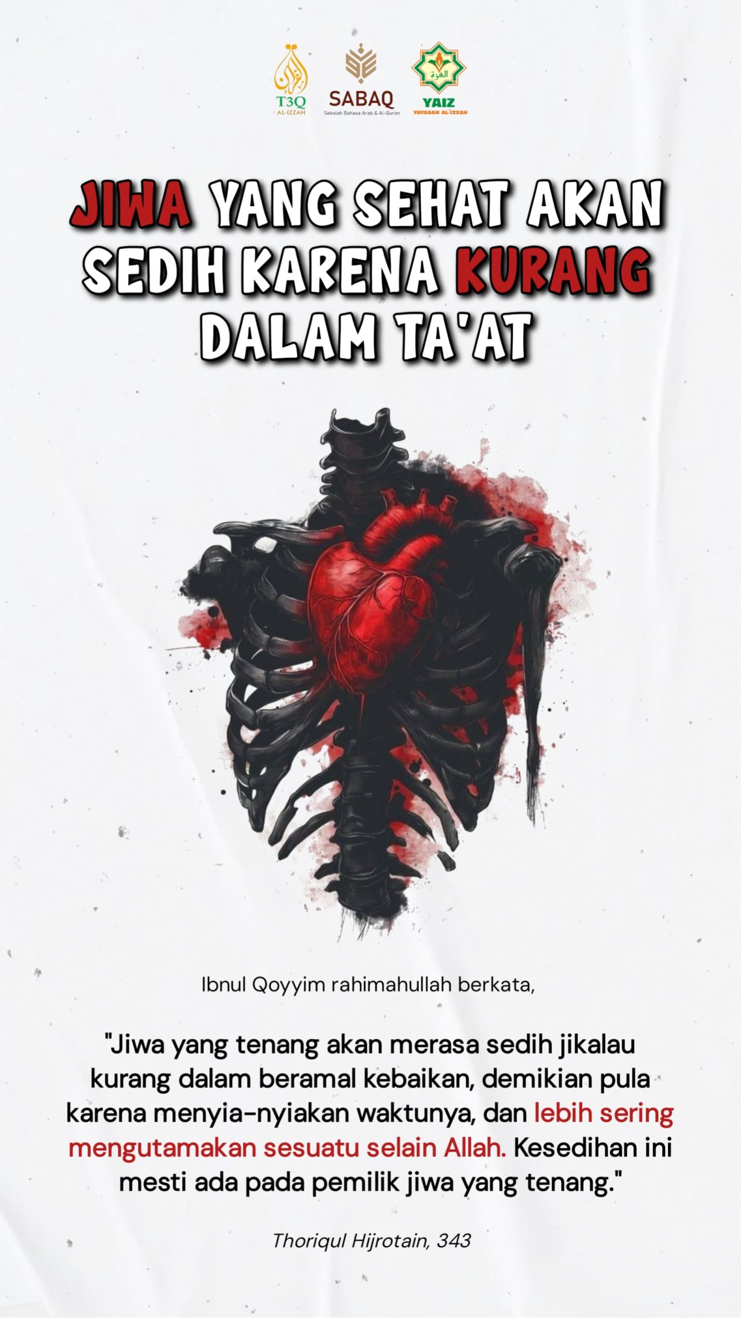 •┈┈┈┈┈┈•✿﷽✿•┈┈┈┈┈┈• Jiwa yang sehat akan sedih karena kurang dalam ta’at Ibnul Qoyyim rahimahullah berkata, “Jiwa yang tenang akan merasa sedih jikalau kurang dalam beramal kebaikan, demikian pula karena menyia-nyiakan waktunya, dan lebih sering mengutamakan sesuatu selain Allah. Kesedihan ini mesti ada pada pemilik jiwa yang tenang.” Thoriqul Hijrotain, 343