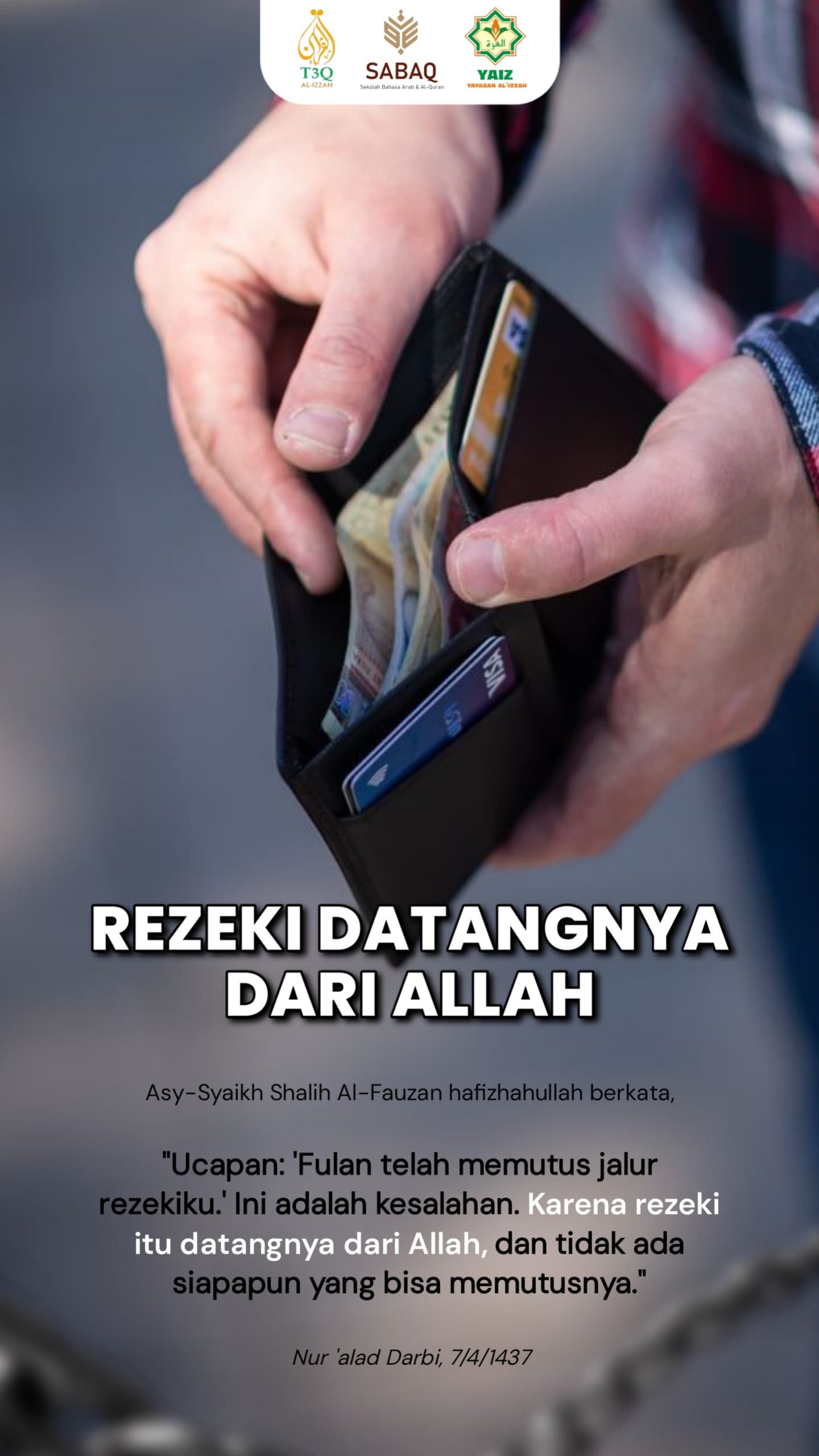 •┈┈┈┈┈┈•✿﷽✿•┈┈┈┈┈┈• REZEKI DATANGNYA DARI ALLAH قال العلامة الفوزان حفظه الله: قولك فلان قطع رزقي هذا غلط الرزق من الله ولا يقطعه أحد (نور على الدرب ٧/٤/١٤٣٧) Asy-Syaikh Shalih Al-Fauzan hafizhahullah berkata, “Ucapan: ‘Fulan telah memutus jalur rezekiku.’ Ini adalah kesalahan. Karena rezeki itu datangnya dari Allah, dan tidak ada siapapun yang bisa memutusnya.” Nur ‘alad … Baca Selengkapnya