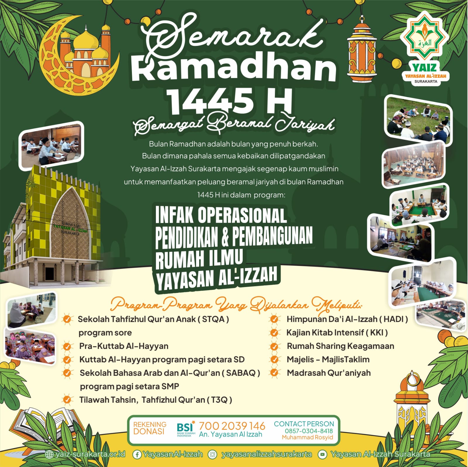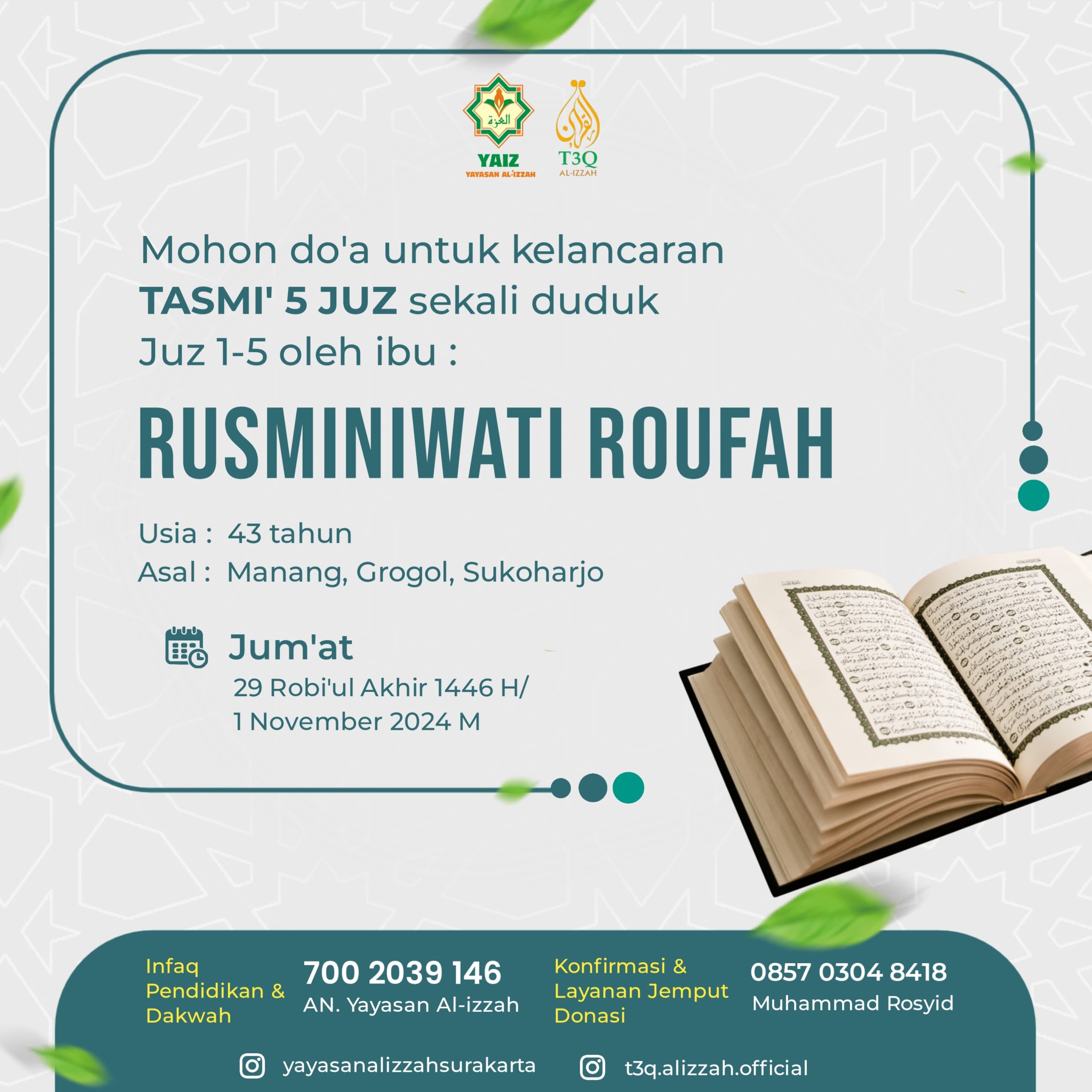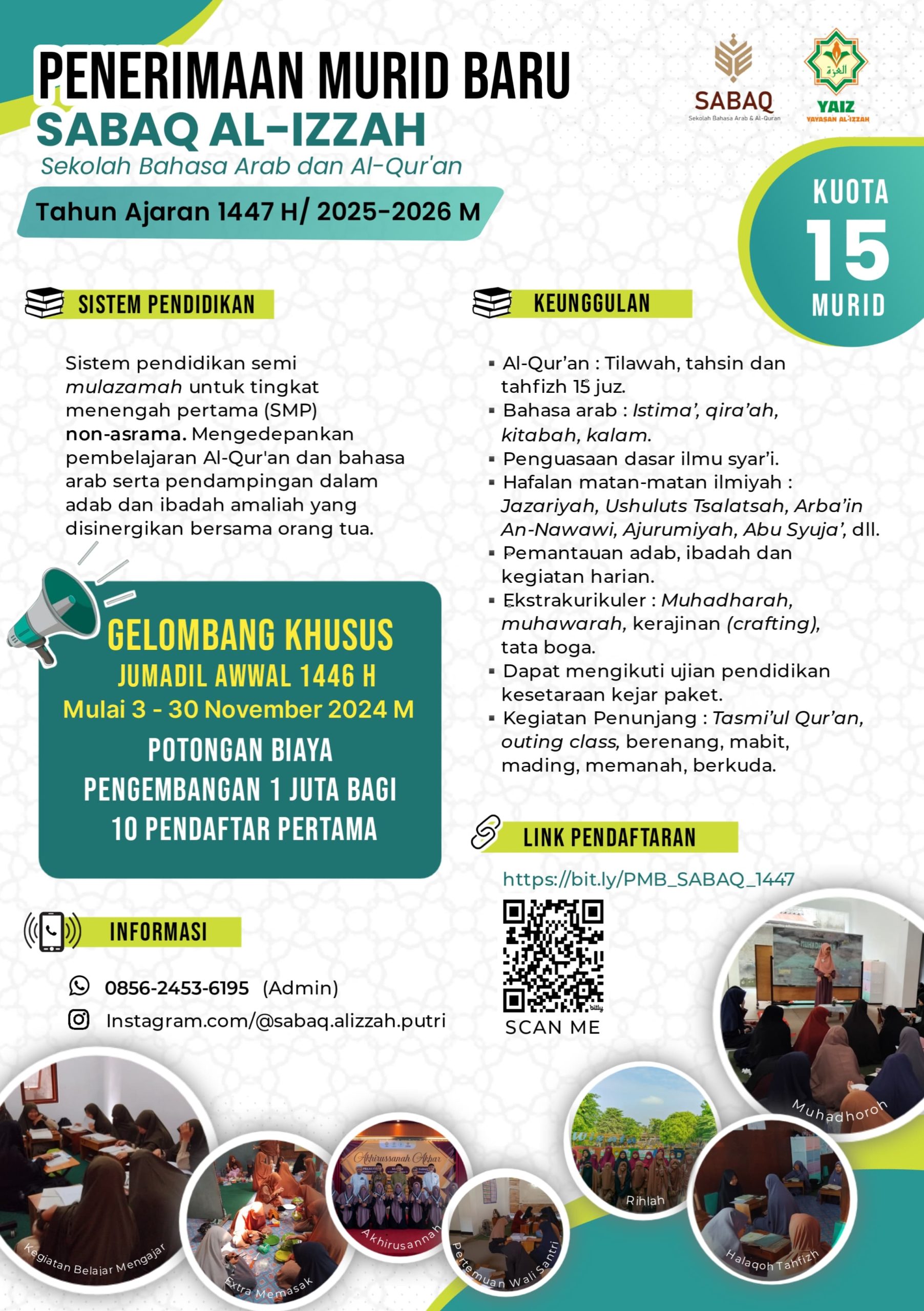 βππβββββββββββββββ TELAH DIBUKA PENERIMAAN MURID BARU Sekolah Tahfizhul Qur’an Anak Al-Izzah (STQA) Program Sore TAHUN AJARAN 1447 H/ 2025-2026 M βββββββββββββββπ πβ “Cinta Al-Qur’an Sejak Usia Dini” ~~~~~~~~~ π Syarat Syarat Pendaftaran 1) Usia SD-SMP 2) Mengisi Formulir Pendaftaran 3) Berkomitmen Kuat dalam Menghafal Al-Qur’an 4) Membayar uang pendaftaran Rp 50.000 5) Lulus Tes Seleksi dan … Baca Selengkapnya