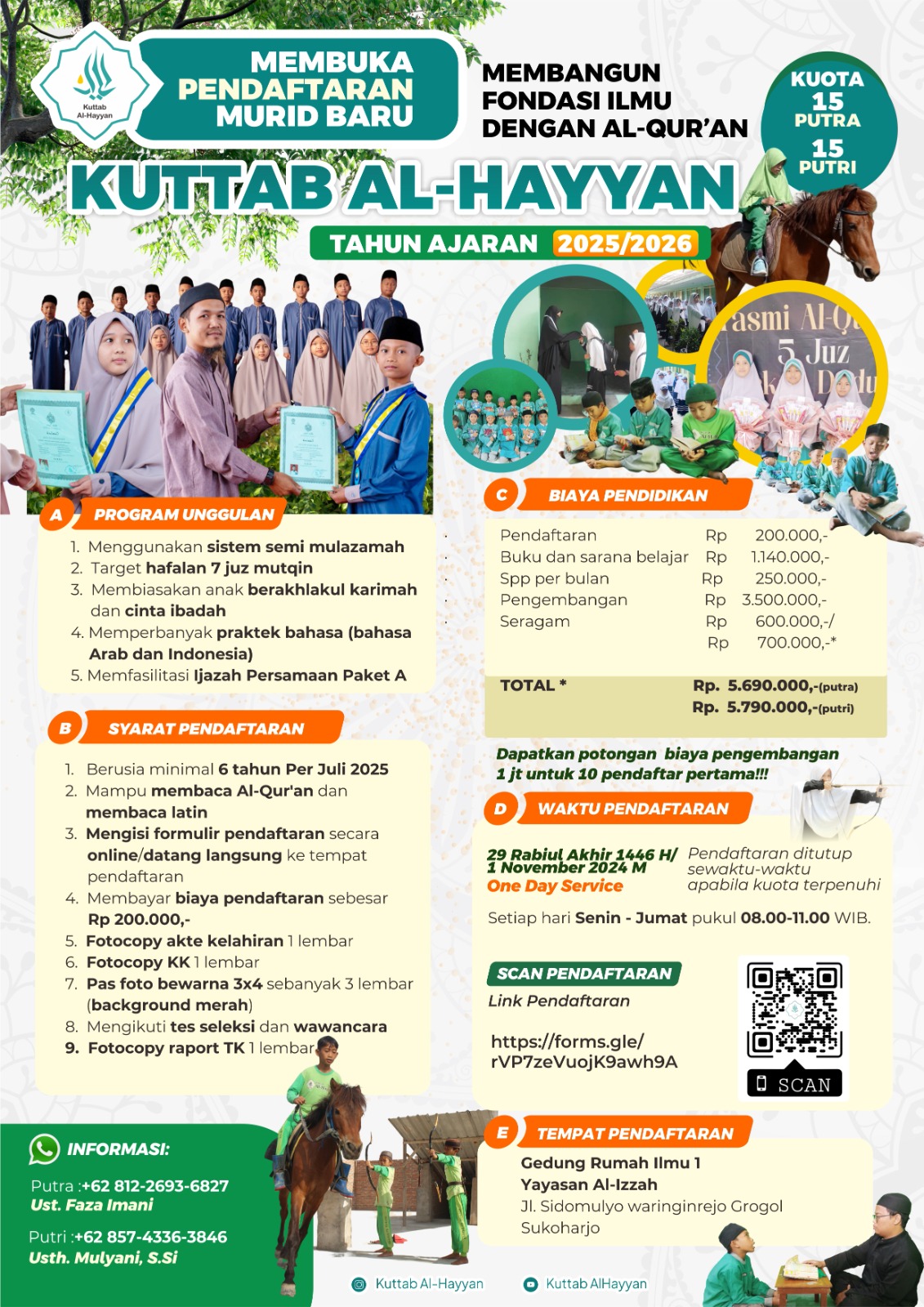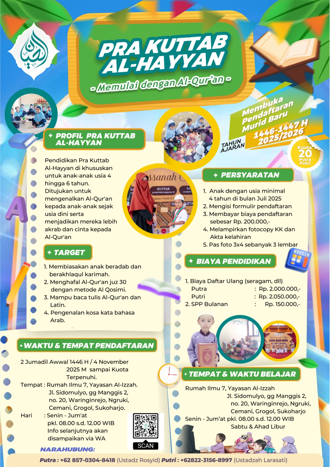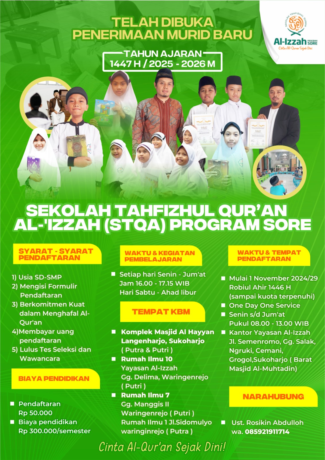Penerimaan Murid Baru (PMB) Sekolah Tahfizhul Qur’an Anak (STQA) Program Sore Th 1447 H / 2025 – 2026 M